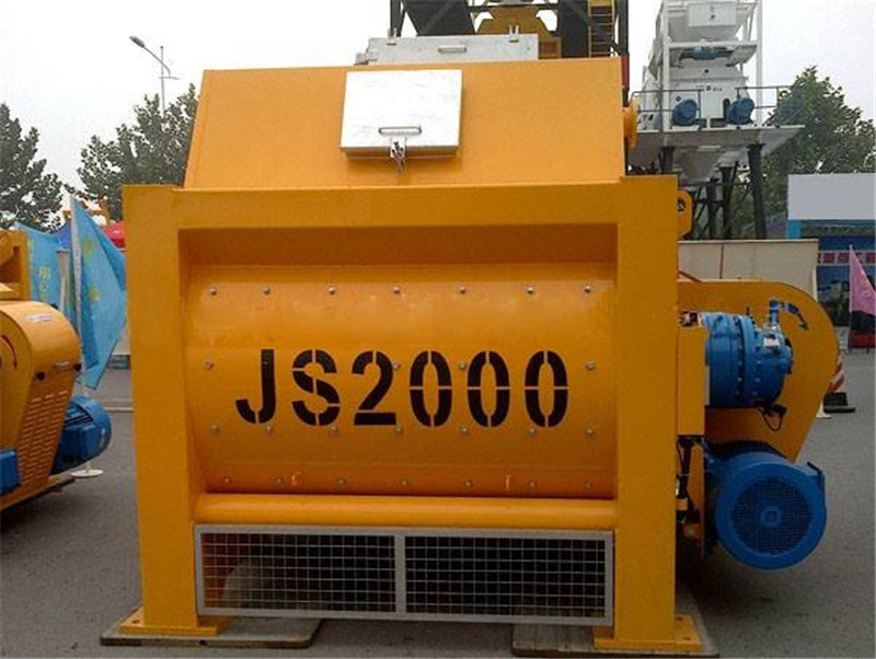 JS2000混凝土攪拌機每次出料2方,也稱為2方混凝土攪拌機、兩方攪拌機,JS2000攪拌機出料循環(huán)周期60S,120攪拌站主機是理想的建筑設備機型,具有自動化程度高、攪拌質(zhì)量穩(wěn)定、效率高、能耗低、噪音小、操作方便、卸料速度快、襯板及葉片使用壽命長,維修保養(yǎng)方便等優(yōu)點。