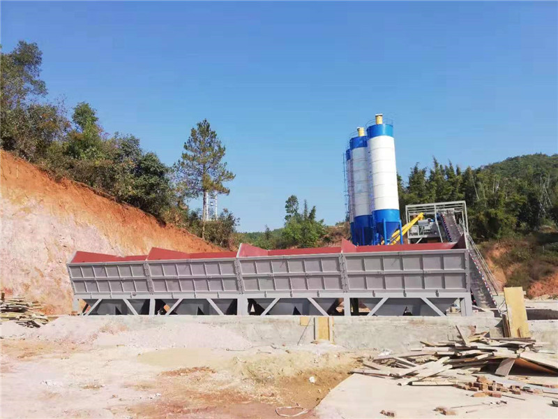 3.HZS180混凝土攪拌站中的砂石上料系統(tǒng)采用大寬度人字皮帶上料,可以按需設(shè)置人行安檢走道。