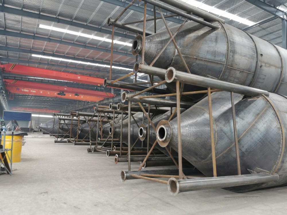 水泥倉(cāng)為攪拌站專用的物料存儲(chǔ)設(shè)備,在整個(gè)混凝土攪拌站生產(chǎn)中中占有重要的作用,近年來(lái)水泥倉(cāng)在工業(yè)建筑,城市建設(shè),道路橋梁水利及構(gòu)件廠等施工中散水泥等散料的儲(chǔ)備料倉(cāng),還可用于攪拌站散水泥儲(chǔ)備的配料設(shè)備?! ∷鄠}(cāng)大體分為上、中、下三部分,其上面主要由是頂端、除塵器、護(hù)欄、人孔組成,頂端就是水泥罐的封頂